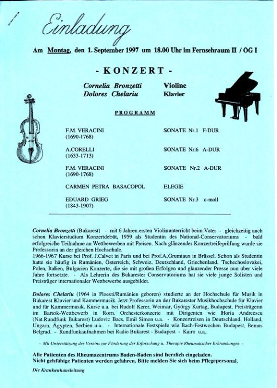 Pe parcursul celor 55 de ani de activitate concertistica, am avut bucuria de a oferi iubitorilor de muzica din multe tari, variantele mele interpretative, intr-un repertoriu foarte extins, pe care l-am prezentat scenic in Romania si in cele peste 150 de turnee artistice in strainatate. | |